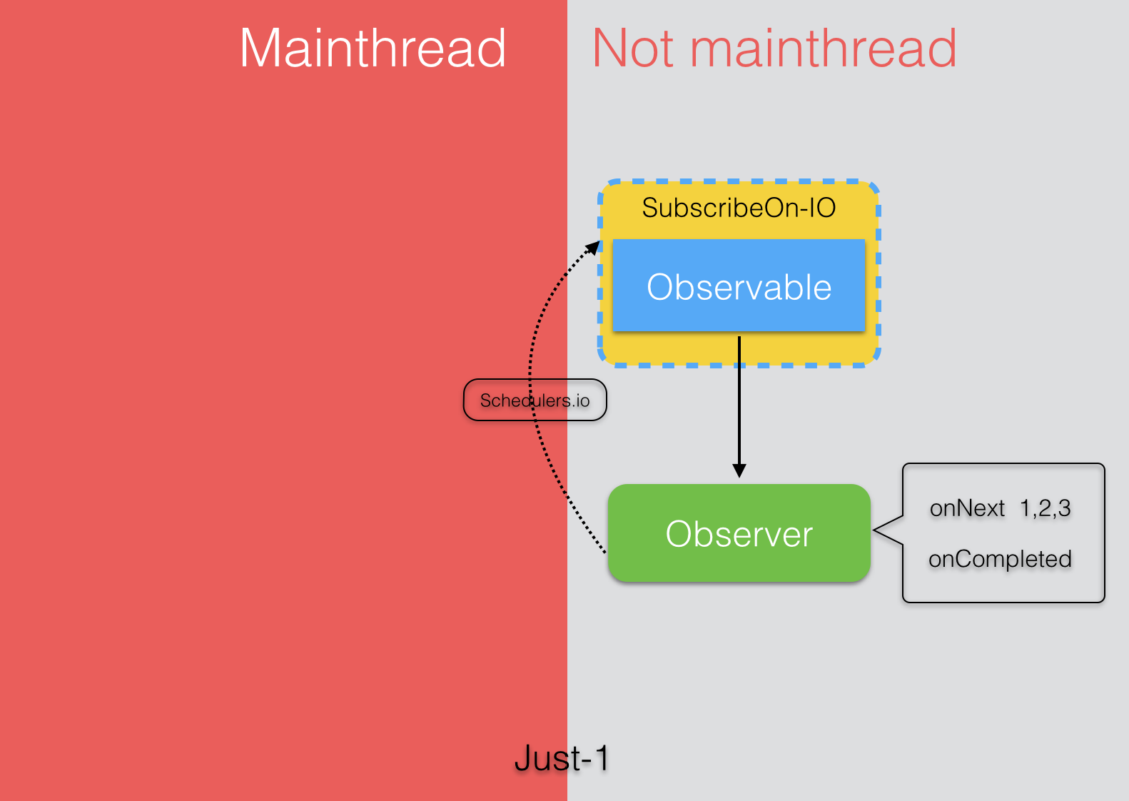 以下几个例子都是使用Observable.just(1,2,3)创建被观察对象,观察者输出1,2,3.