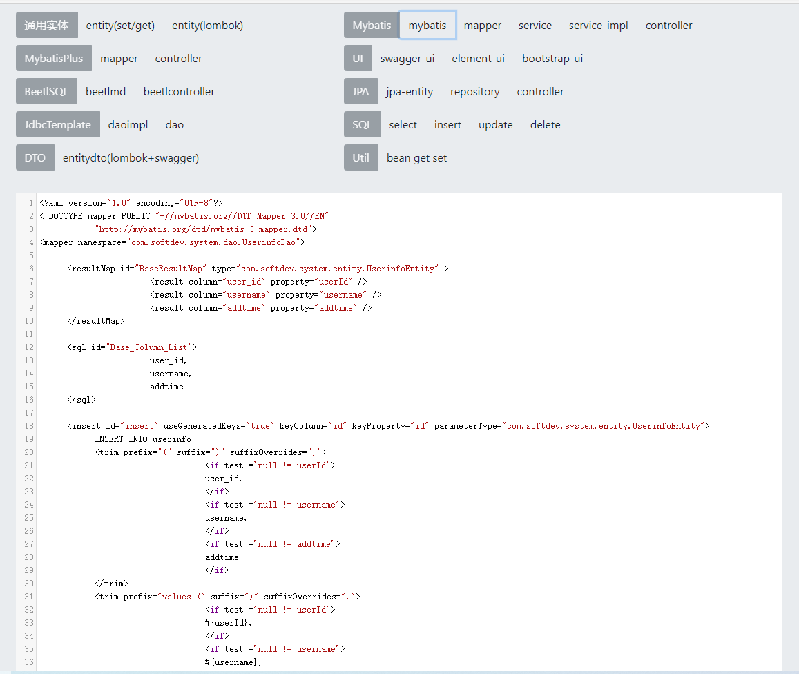 • √ 用DDL-SQL语句生成JPA/JdbcTemplate/Mybatis/MybatisPlus/BeetlSQL相关代码.