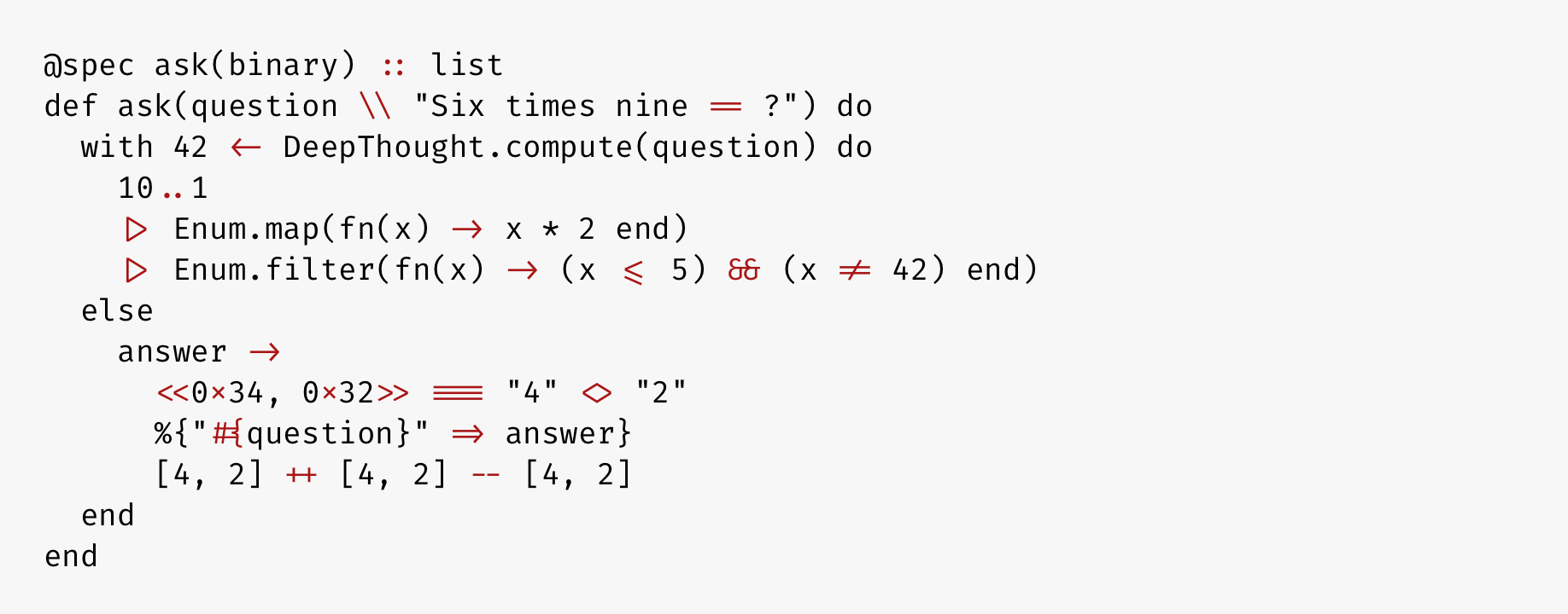 Fira Code is an extension of the Fira Mono font containing a set of ligatures for common programming multi-character combinations. This is just a font rendering feature: underlying code remains ASCII-compatible. This helps to read and understand code faster. For some frequent sequences like .. or //, ligatures allow us to correct spacing.