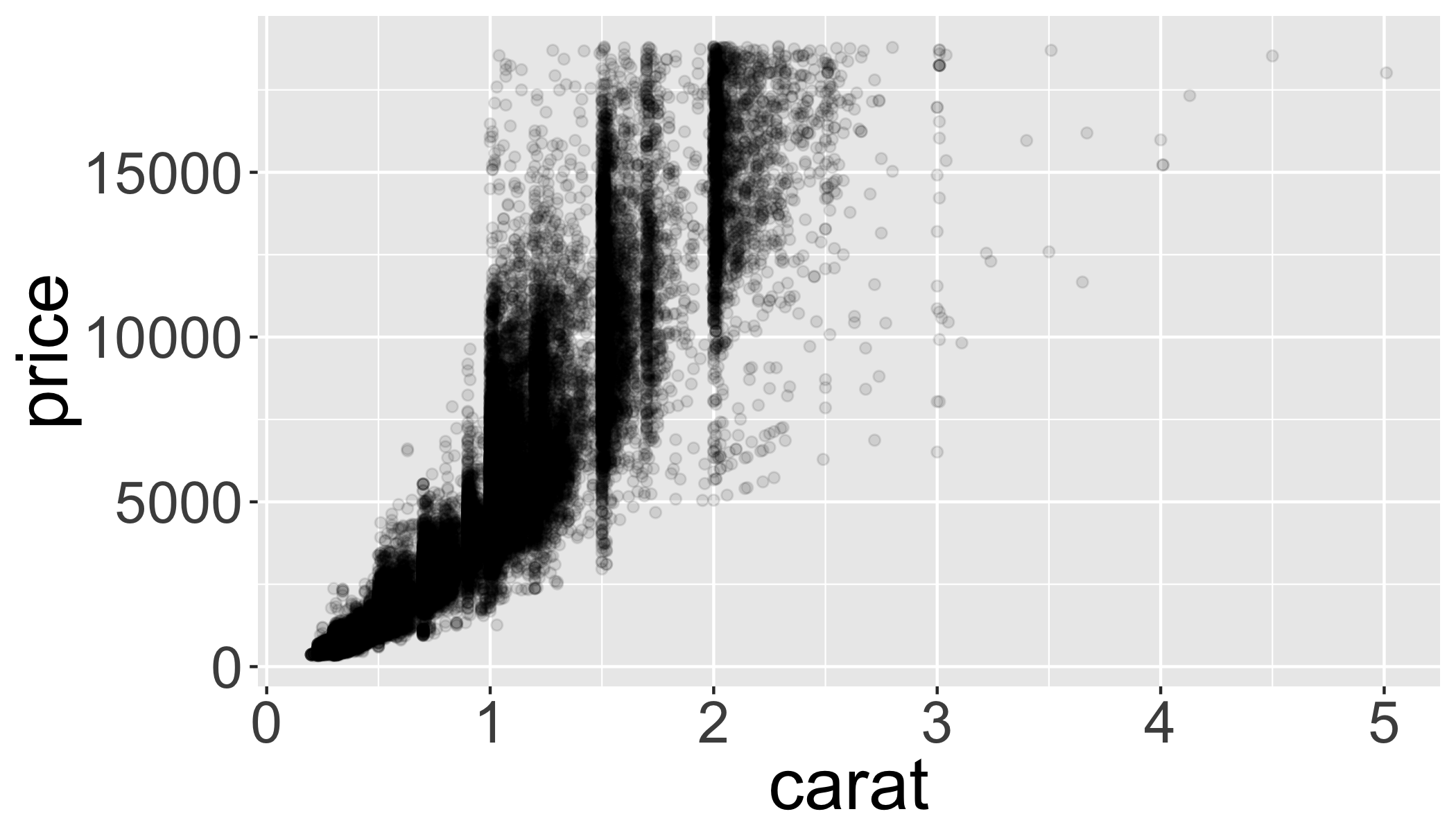 geom_point(colour = "red", size = 3)d <- ggplot(diamonds, aes(carat, price))